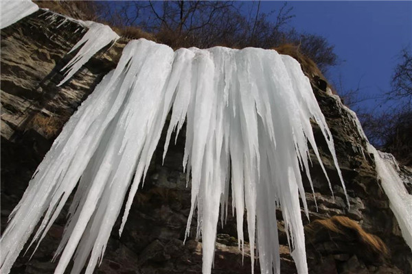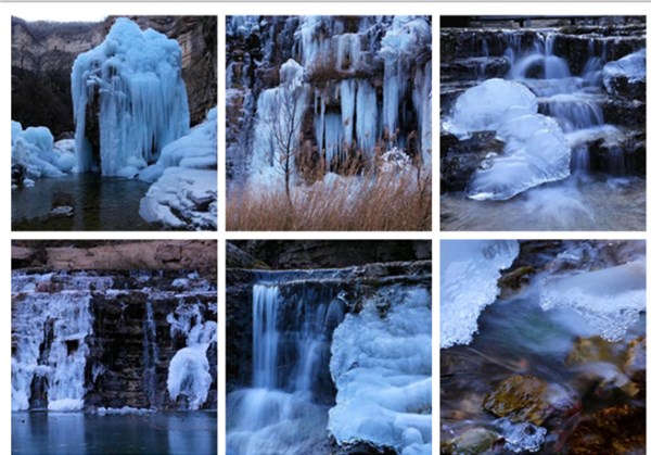 在林州市石板巖鎮(zhèn)境內(nèi),有一處瀑布,每到隆冬季節(jié)就被凍住形成冰瀑,冰瀑從蒼褐色的山崖缺口處堆積而下,在陽光的映照下,呈淡藍(lán)色,如一大塊晶瑩的碧玉,鑲嵌在這幽靜的山巒之上,又如一棵碩大的圣誕樹,生長在峽谷之中。