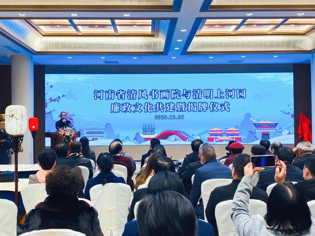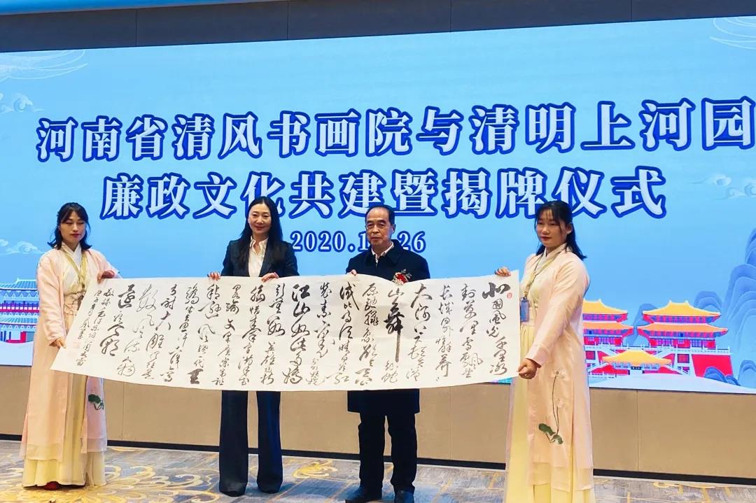 2020年12月26日,河南省清風(fēng)書畫院與清明上河園廉政文化共建暨揭牌儀式在清明上河園召開。