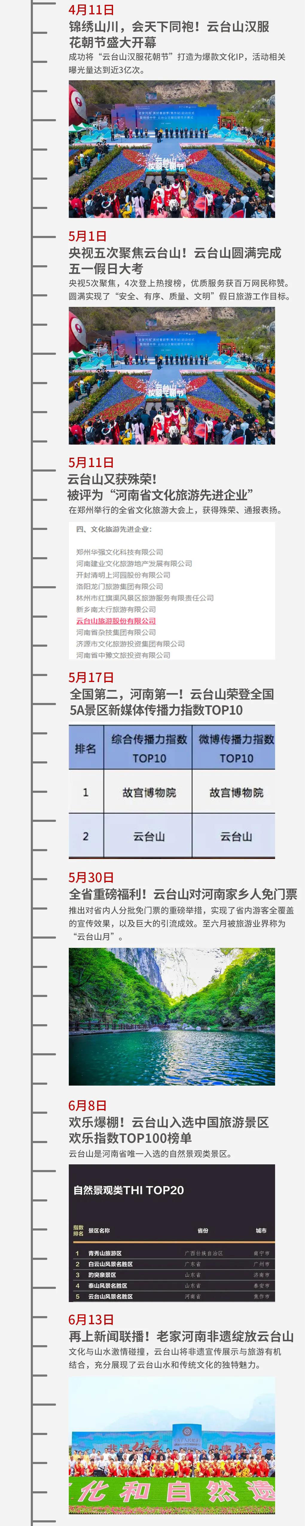 今年疫情以來(lái),云臺(tái)山景區(qū)圍繞“宣傳力度不減、市場(chǎng)聲量不斷、項(xiàng)目推進(jìn)不停、人心凝聚不散”總策略,在抗擊疫情和復(fù)工復(fù)產(chǎn)過(guò)程中危中搶“機(jī)”,多措并舉、積極營(yíng)銷(xiāo),不僅引領(lǐng)行業(yè)、成效卓著,更造就了旅游業(yè)內(nèi)繼“云臺(tái)山現(xiàn)象”后疫情下的“云臺(tái)山旅游新現(xiàn)象”!