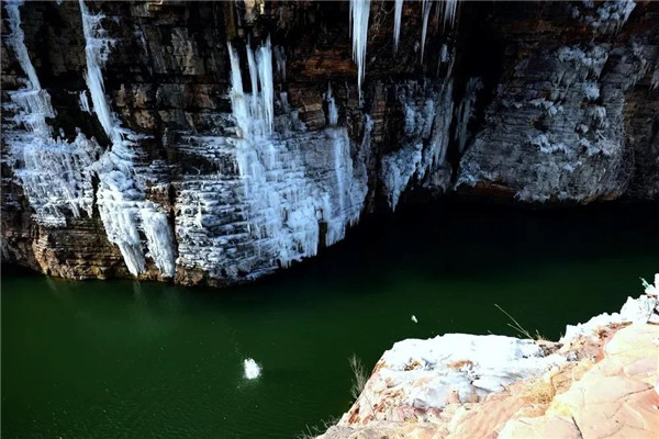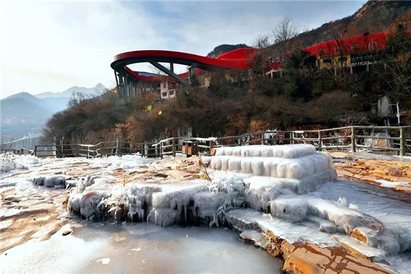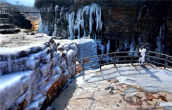 時(shí)值寒冬,受強(qiáng)冷空氣影響,林州市紅旗渠景區(qū)的絡(luò)絲潭出現(xiàn)冰瀑景觀。