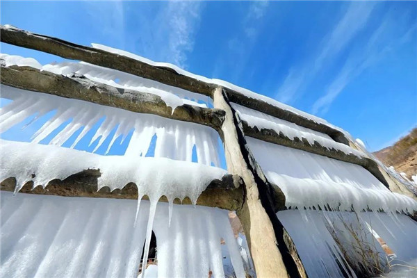 往日溪流涌動(dòng)處掛滿了冰柱。