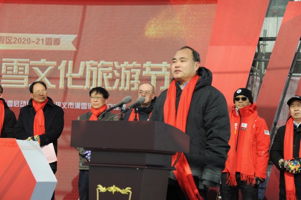 省文化和旅游廳二級(jí)巡視員崔玉山宣布冰雪文化旅游節(jié)開幕