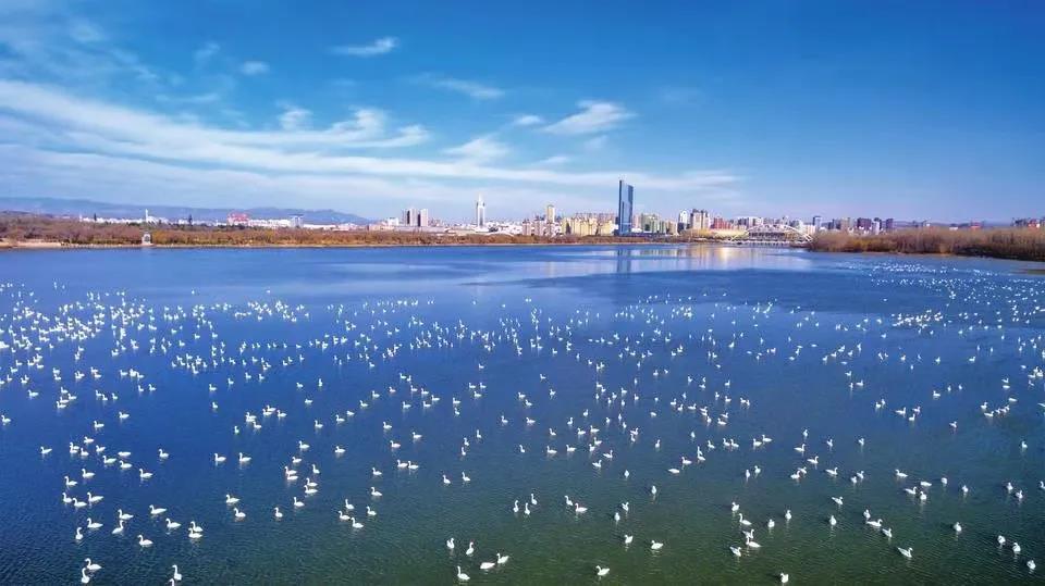 寒冬凜冽,成千上萬只天鵝此刻已從遙遠(yuǎn)的西伯利亞飛臨這里,上演著優(yōu)美的天鵝圓舞曲。黃昏晨曦、云霧雨雪、都淹沒在天鵝的美妙集結(jié)中。天鵝的美,美在靈動,美在每時每刻,連閉上眼,都沉浸在天鵝曼妙的叫聲中。