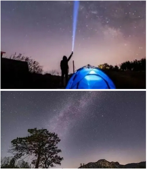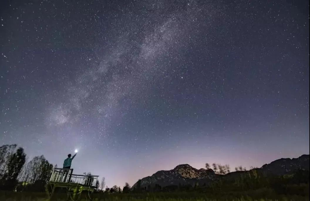 嵩山的星空,神秘、夢(mèng)幻,滿天星斗閃爍著光芒,像無數(shù)銀珠,密密麻麻鑲嵌在深黑色的夜幕上。