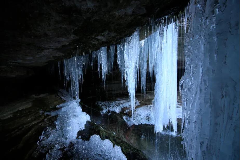 懸崖峭壁上的冰掛像鐘乳石