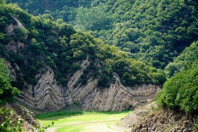 波浪石位于涉村鎮(zhèn)洪河村洪河水庫庫區(qū)。同嵩山地質(zhì)形成一樣,由遠(yuǎn)古地殼運(yùn)動扭曲擠壓形成,層層疊疊,形成此嵩山地質(zhì)奇觀。