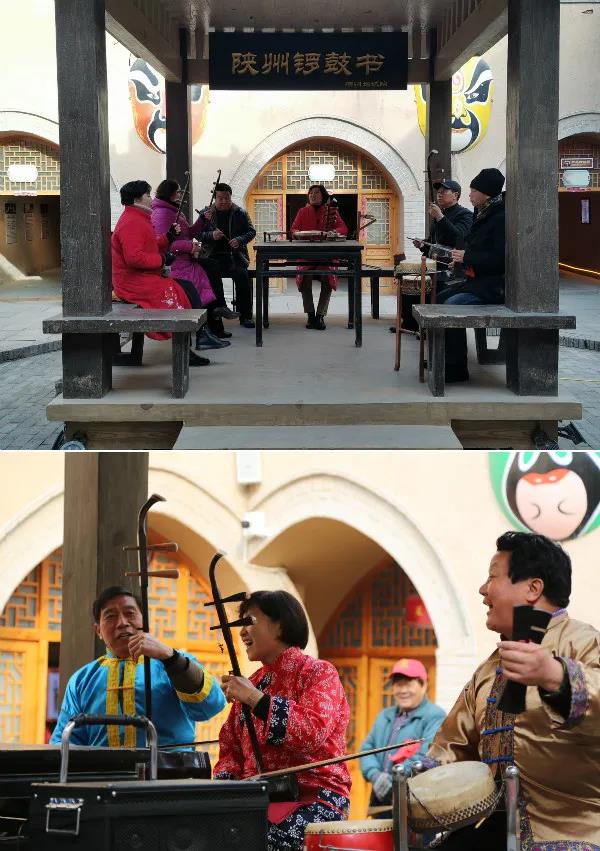除此之外,陜州地坑院還有歷史院、營(yíng)造技藝院、農(nóng)耕院、戲曲院、攝影院等等,主題不同,展示內(nèi)容不同。10號(hào)院的木偶戲和皮影戲全天候?qū)τ慰兔赓M(fèi)開放,12號(hào)院的民俗舞臺(tái)更是讓游客稱贊連連,忍不住都換上衣服親自上臺(tái)體驗(yàn)。