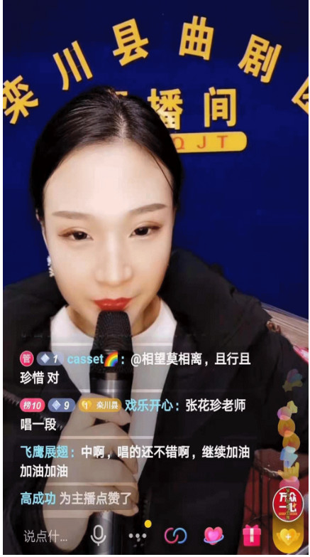 王團(tuán)長(zhǎng)介紹說:“縣曲劇團(tuán)從元旦開始到現(xiàn)在,每周一至周五晚8點(diǎn)準(zhǔn)時(shí)直播,真是收獲了太多的感動(dòng)。直播的初衷也是想著試試看傳統(tǒng)戲曲能否結(jié)合現(xiàn)在的潮流,真是沒想到效果還真不錯(cuò),每天一個(gè)半小時(shí)的直播平均觀看量千余人次,點(diǎn)贊好幾萬,其中還收到不少年輕人的追捧,潮流的方式把傳統(tǒng)的戲曲文化也帶進(jìn)了年輕人的世界,這樣的受眾讓我們驚嘆不已。傳統(tǒng)文化藝術(shù)似乎插上了翅膀,從這小小見方的戲曲舞臺(tái)飛向了社會(huì)大舞臺(tái)。”