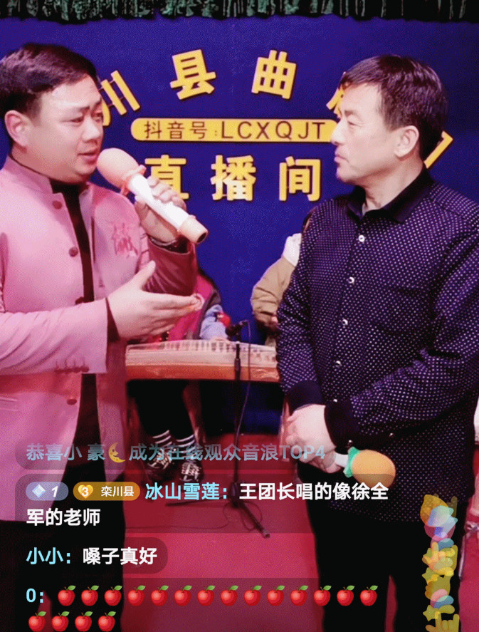 晚上8點(diǎn)準(zhǔn)時(shí)開播,抖音直播間瞬間迎來了好幾百粉絲前來觀看。伴著主持人的互動(dòng)開場(chǎng)秀,王團(tuán)長(zhǎng)登場(chǎng)為大家?guī)砹说谝粋(gè)演出節(jié)目《洛陽令》,粉絲們紛紛送上點(diǎn)贊的小手手,互動(dòng)屏幕上滿是稱贊。
