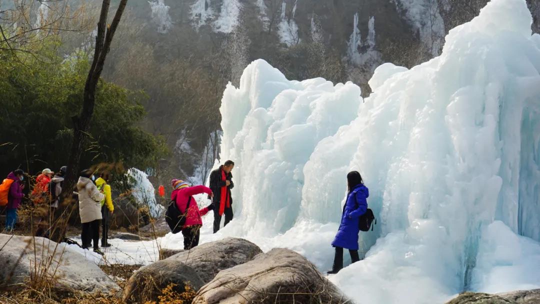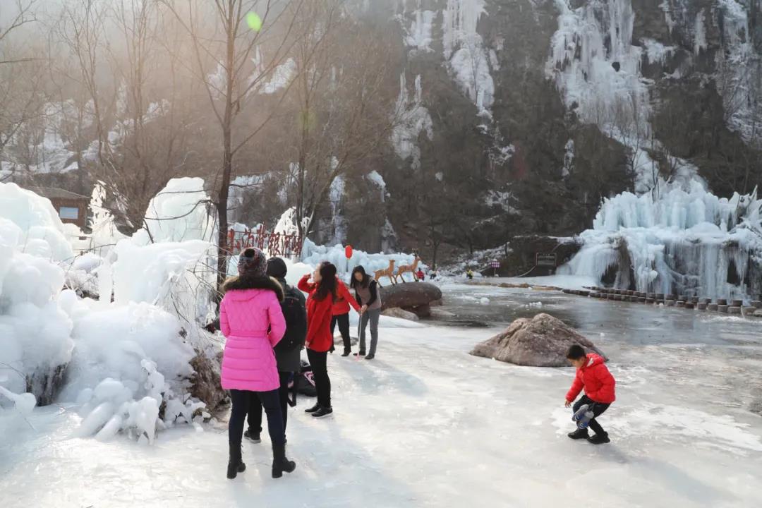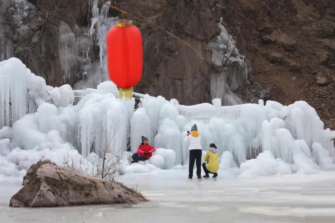 遠(yuǎn)近高低潔白的冰掛,構(gòu)成了一副妙趣橫生的山水畫卷,宛然一片北國(guó)風(fēng)光,令人留戀忘返。