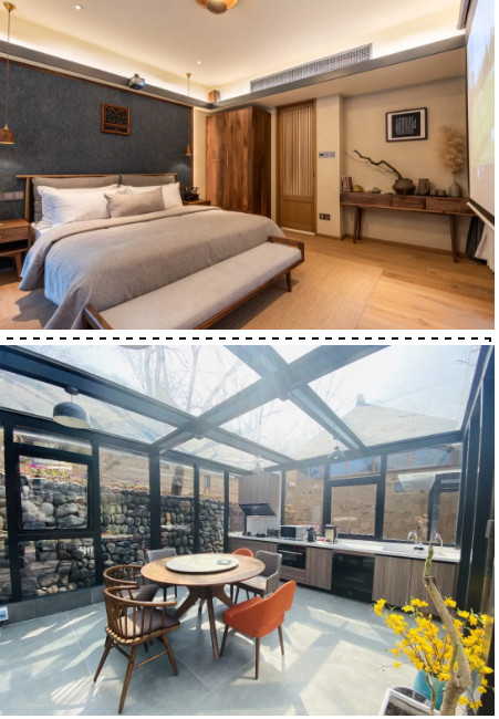 依山而建,臨水觀街,白日綠樹成蔭,夜間星燈相映,王屋老街景致盡收眼底。小十方酒店的院落,不僅僅是一個(gè)物理空間,也不僅僅是一個(gè)名為“家”的地方,在這方天地間,蘊(yùn)藏著每一個(gè)來這里的人真摯、細(xì)膩的內(nèi)心情感。