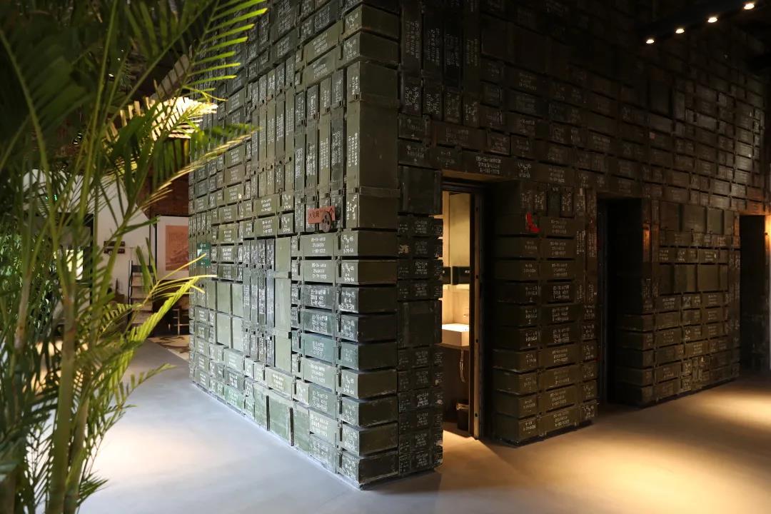 漫步酒店,獨(dú)具三線氣息的斑駁墻體,飽經(jīng)歲月洗禮的鍋爐煙囪,子彈箱做成的隔斷墻,擺放別致的老物件......處處處都是軍工元素,滿滿的都是那些年的味道。