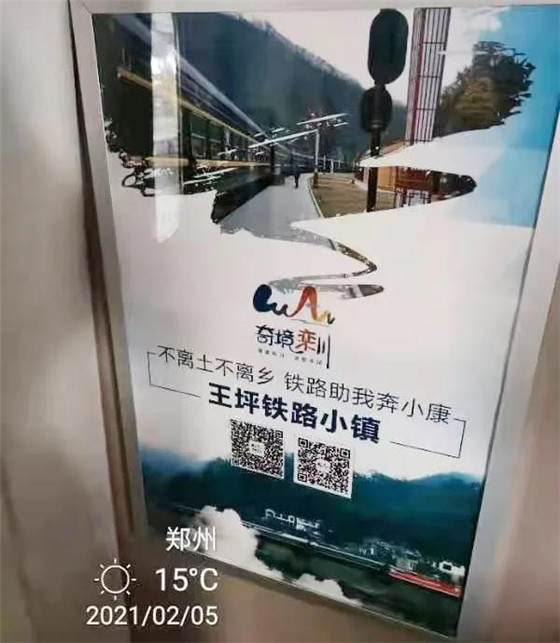 走在車廂內(nèi),欒川各景區(qū)的美景圖片、鐵路小鎮(zhèn)王坪村和新南村的鄉(xiāng)村美圖映入眼簾,心中自豪感和幸福感瞬間爆棚。坐在這舒適的高鐵座椅上,看著奇境欒川標志logo圖和奇境欒川自然不同的廣告語,頓時覺得隨著高鐵飛速向前,欒川也在飛速向前。