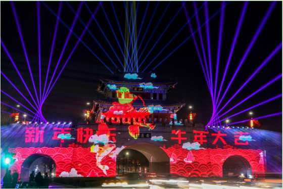 伴隨著歡騰的鞭炮聲響起,鯉魚躍龍門,繁花朵朵開,古城換新裝,一片喜慶洋洋。安遠(yuǎn)門將這最后篇章,化作神奇的牛寶寶,為觀眾送上新春祝福!