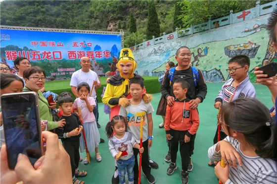 中國(guó)猴山五龍口景區(qū)的孫大圣和Breaking男孩八戒在央視《黃金100秒》一戰(zhàn)成名。今年,中國(guó)猴山五龍口景區(qū)把《黃金100秒》的舞臺(tái)搬進(jìn)了景區(qū),搬到了全市人民身邊。