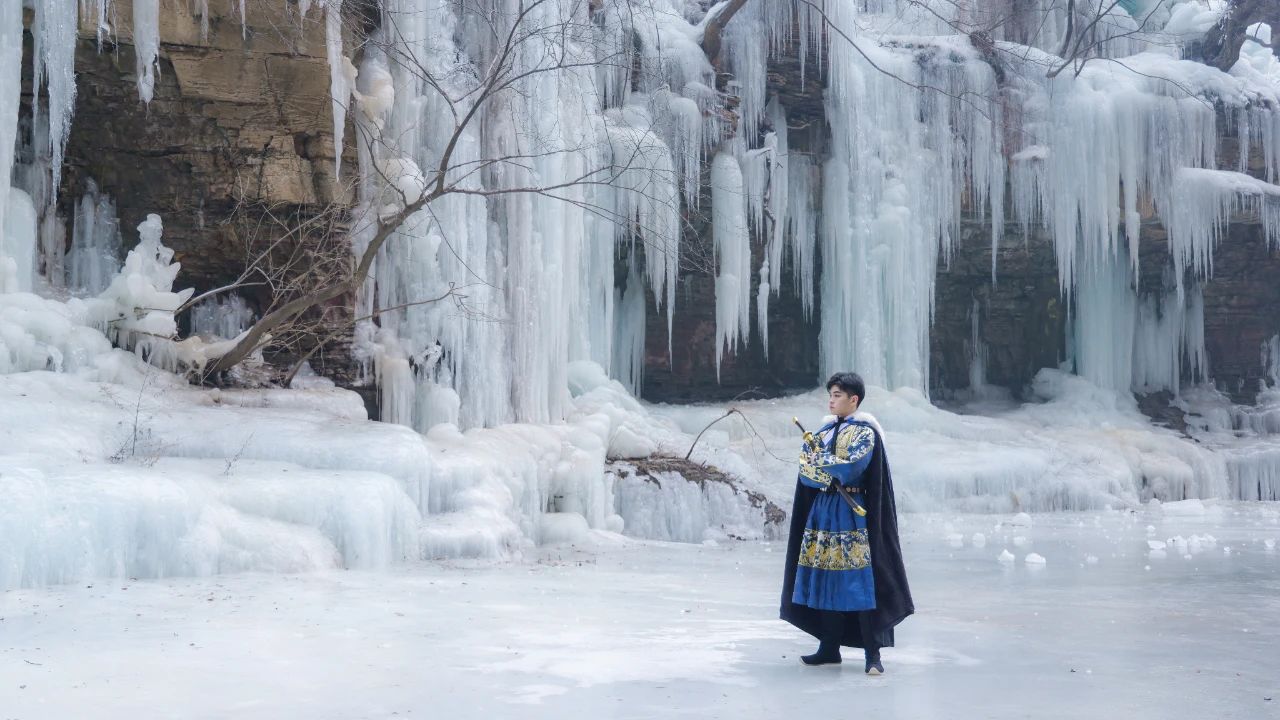 身著漢服的翩翩少年郎,穿梭在冰封峽谷間,英姿颯爽、玉樹臨風(fēng),一展云臺冬日盛世美顏,形成了獨特而韻味幽遠的風(fēng)景線。
