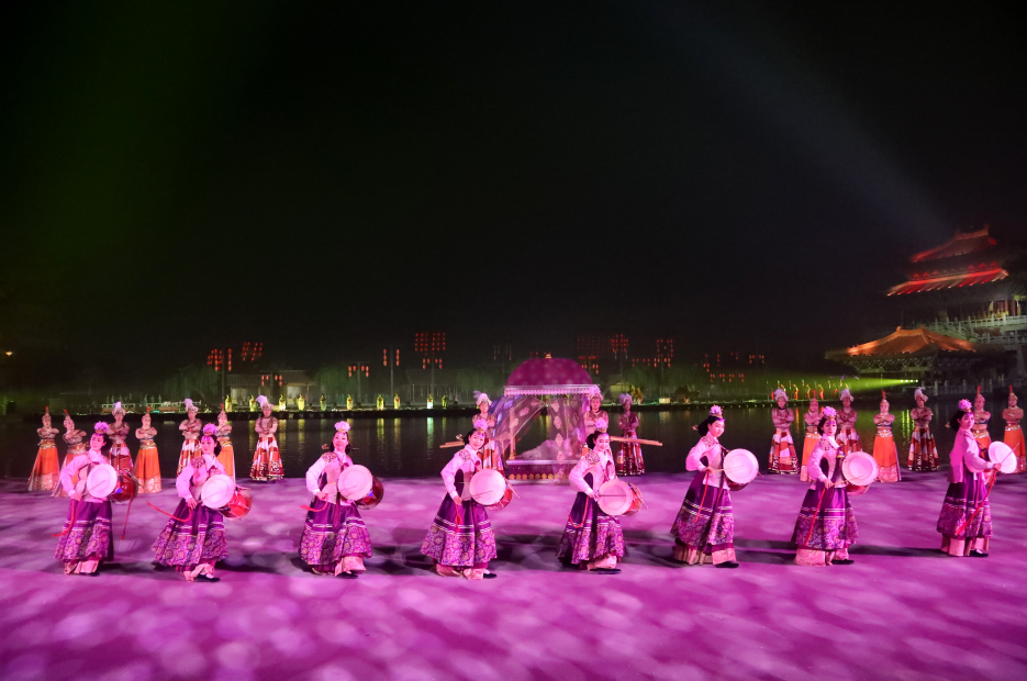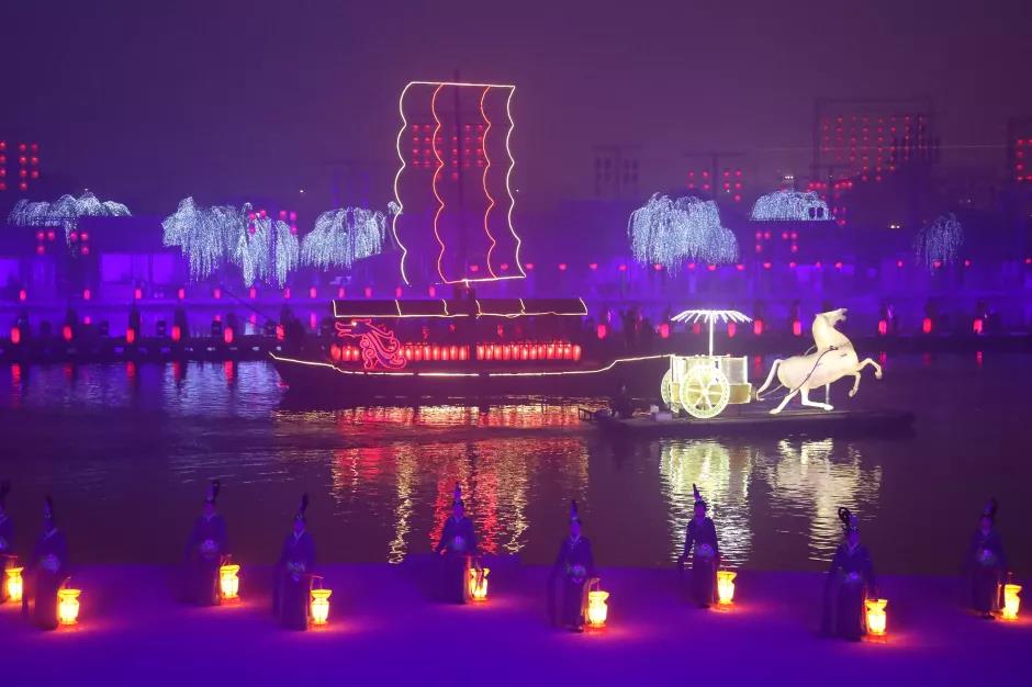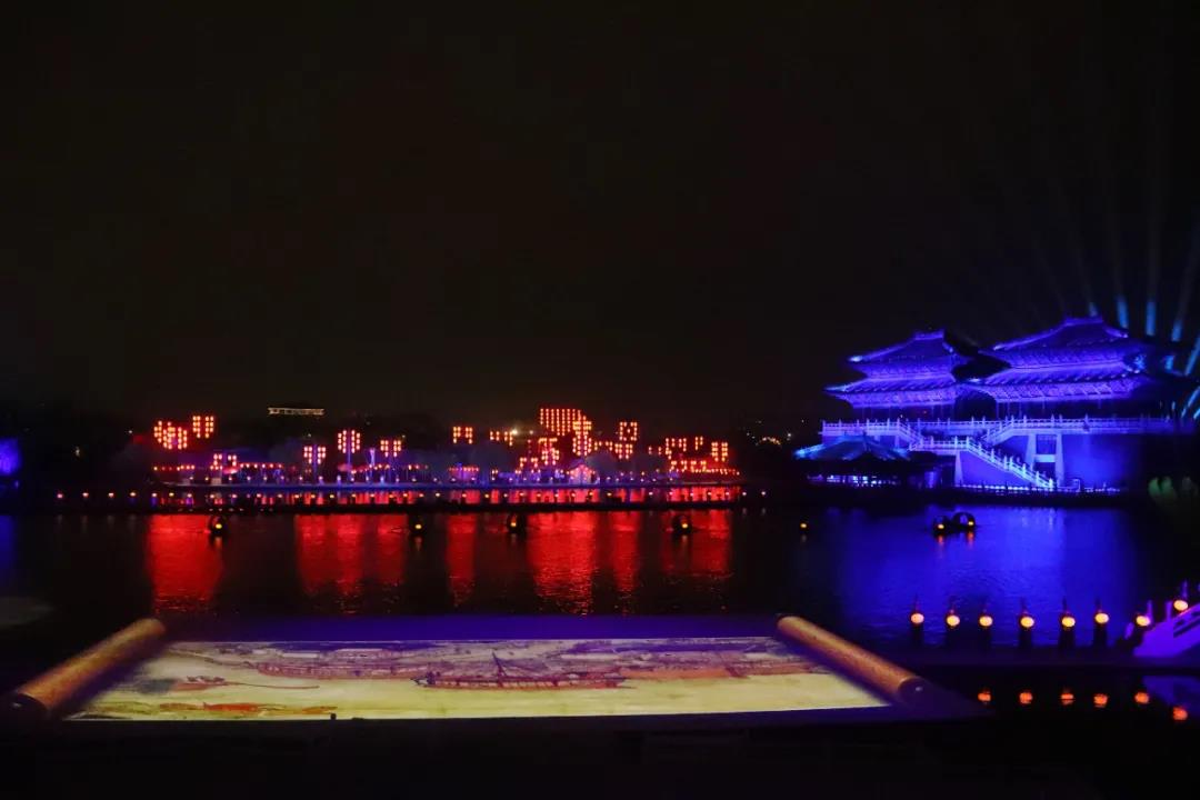 整個演出場面橫跨景龍湖南北水面,演出畫面縱深更是長達(dá)數(shù)百米,場面宏大,無不為之驚嘆!特別是當(dāng)燈光照亮的時候,一幅北宋王朝的盛世畫卷就這樣出現(xiàn)在了人們的眼前。