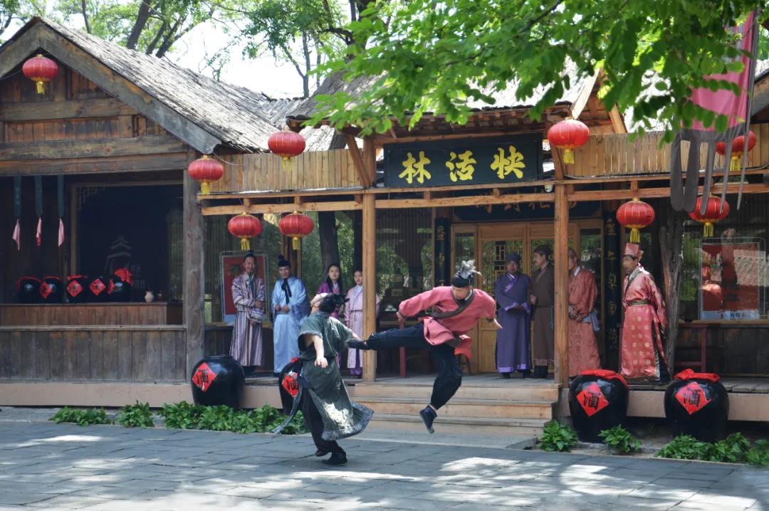 大宋武俠風(fēng),水滸特色游。水滸街、十字坡、大宋武館、城寨沙場(chǎng)......全景區(qū)每天200+場(chǎng)演出,眾多實(shí)景表演,一場(chǎng)接一場(chǎng),全天候表演。讓游客們?nèi)谌氪笏问芯,體驗(yàn)闖蕩江湖的快感。