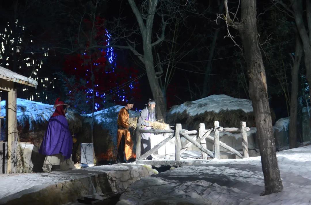 夜水滸。春節(jié)期間最新節(jié)目夜間升級(jí)版《三打祝家莊》、《風(fēng)雪山神廟》,攻城馬戰(zhàn),感官大戲。
