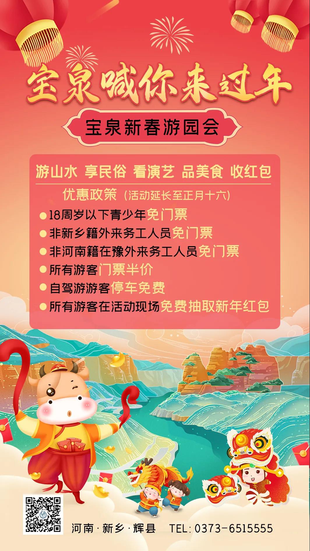 寶泉新春游園會自開啟以來,場面火爆,引發(fā)全民打卡熱潮!應(yīng)廣大游客朋友要求,寶泉新春游園會活動及優(yōu)惠政策繼續(xù)!時間延長至正月十六(2月27日)!