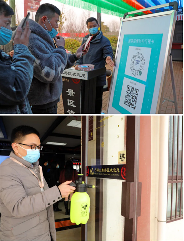 假日期間,芒碭山旅游區(qū)根據(jù)上級(jí)發(fā)布的假期疫情防控要求,每日定時(shí)對(duì)基礎(chǔ)硬件設(shè)施進(jìn)行消殺,并要求所有一線員工全程佩戴口罩,確保旅游環(huán)境安全。同時(shí)積極倡導(dǎo)線上預(yù)約購(gòu)票,無(wú)接觸式入園,在符合規(guī)定的條件下盡可能滿足更多游客的出行需求。游客到達(dá)景區(qū)后會(huì)進(jìn)行手部消毒、健康碼核驗(yàn)和重點(diǎn)人群信息登記,堅(jiān)決做好疫情防控工作。