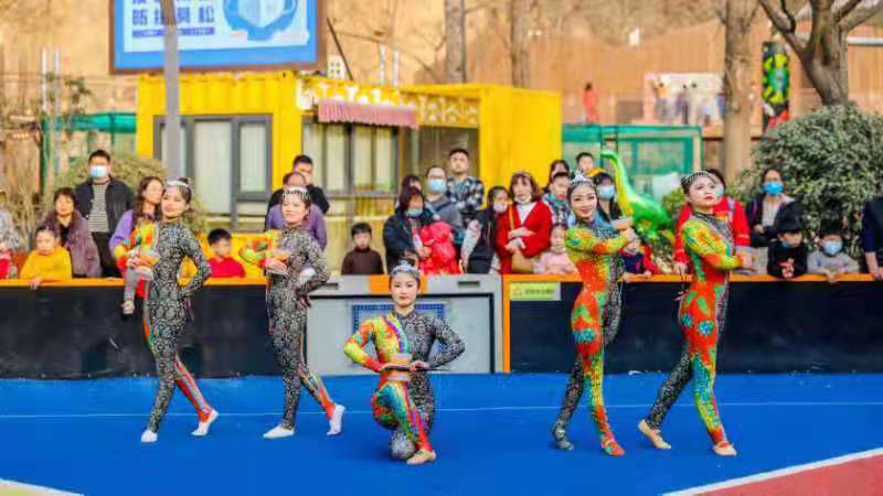 為向留鄭過(guò)年的市民百姓提供更加精彩的文化活動(dòng),建業(yè)足球小鎮(zhèn)在做好建業(yè)大食堂非遺小吃基礎(chǔ)上,推出“來(lái)足球小鎮(zhèn),和牛人過(guò)牛年”主題活動(dòng)。春節(jié)期間,足球小鎮(zhèn)邀請(qǐng)到近百名身懷絕技的藝人來(lái)到小鎮(zhèn)“綻放技藝”,齊度佳節(jié)。蹬缸、舞獅、柔術(shù)、花樣空竹、開(kāi)封盤鼓、國(guó)樂(lè)、手球、魔術(shù)……40余項(xiàng)節(jié)目異彩紛呈,贏得游客陣陣喝彩。