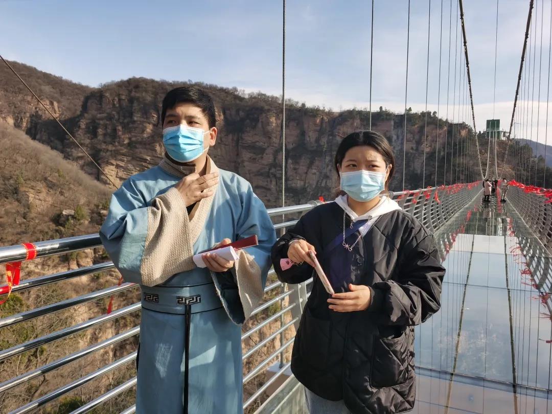 玻璃水滑處,一對(duì)情侶參與NPC游戲互動(dòng)