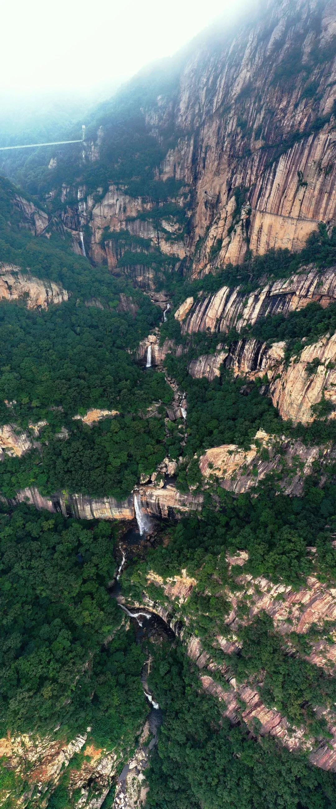九龍大峽谷底海拔900米,峽谷落差600多米,初春時(shí)節(jié),冰雪消融,大大小小18條瀑布,蜿蜒相連,白練飛懸,是白云山一道極為震撼的風(fēng)景線。