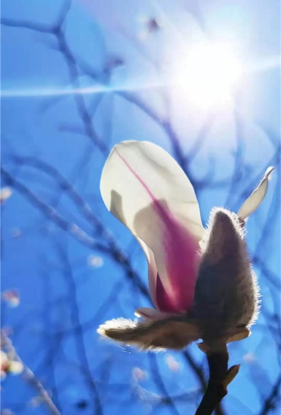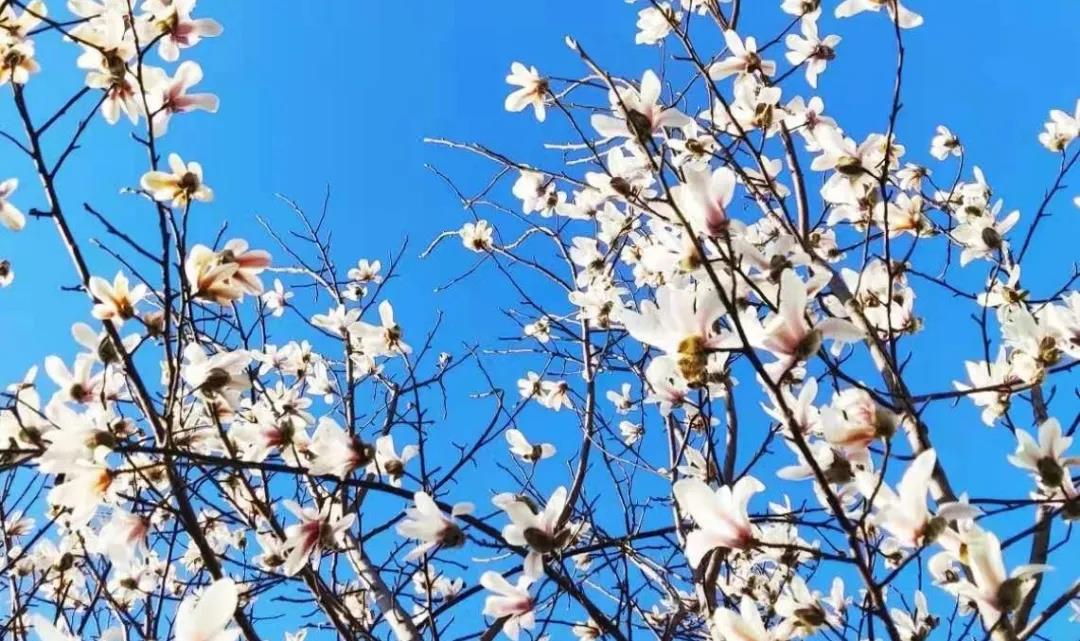 望春,玉蘭枝頭迎立!幽香,默默沁入心脾,盛花期雖過,但天藍(lán)高樹上,辛夷花發(fā)白如雪,春的信號,從未失準(zhǔn)。希望,永不止一瞬!