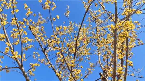 永別昨日不快,今朝有金梅相送,錯(cuò)落有致層層向陽,亂時(shí)有序,不負(fù)早時(shí)春光,枝頭昂立,披掛漫天瀟灑,誰還想那苦寒之處昨日黃花!