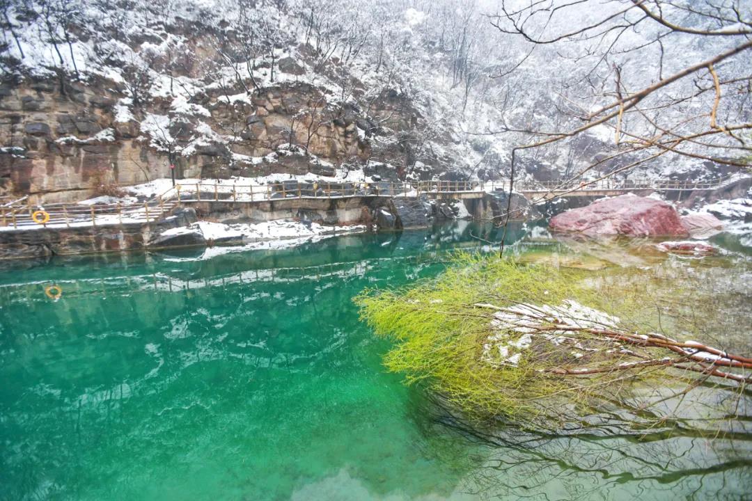 每年的初雪都是上天落下的驚喜。水繞山,山負雪,水映人,讓靈魂沐浴在雪的圣潔之間得到洗滌。雪后的翡翠海將所有的情誼藏于碧水之中,時間仿佛靜止,只看得水波散去……