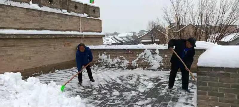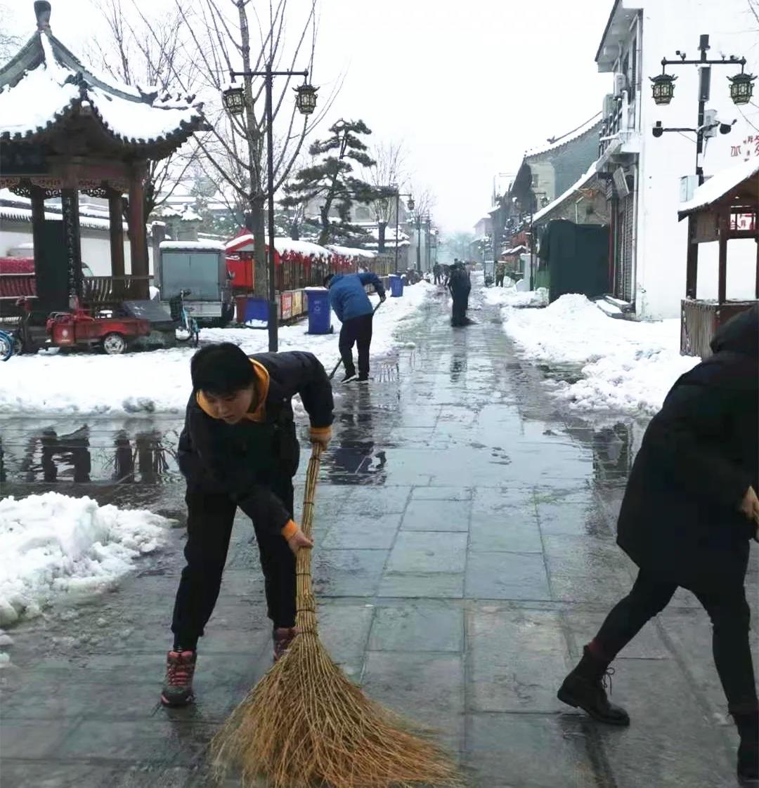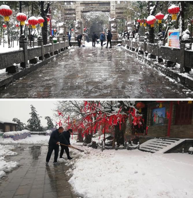 雪景雖美但也給游客出行帶來(lái)了不便,一大早,?h古城、大伾山、浮丘山景區(qū)職工積極開(kāi)展清掃積雪的工作,他們用辛勤的汗水換來(lái)了景區(qū)舒適、整潔的旅游環(huán)境。