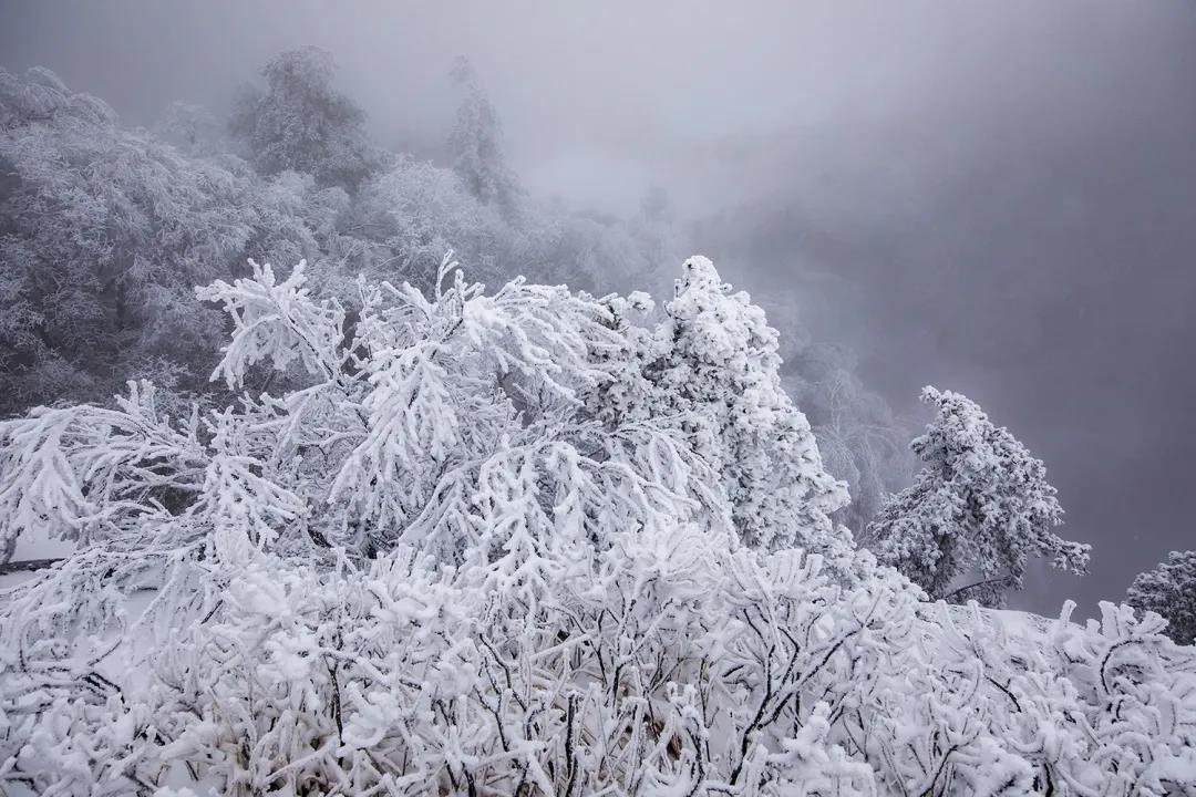 乘上索道將林海雪原盡收眼下,云霧繚繞其間 如臨仙境,拾級(jí)而上,沿途霧凇,凝霜掛雪,戴玉披銀,肆意綻放。