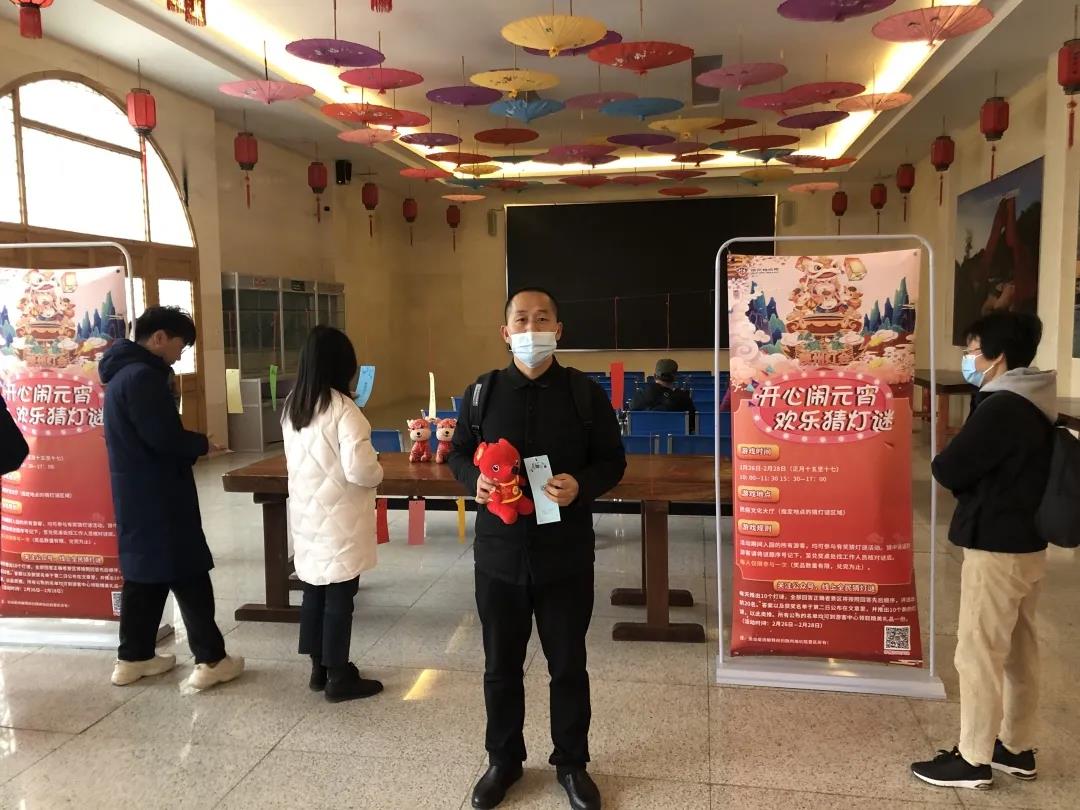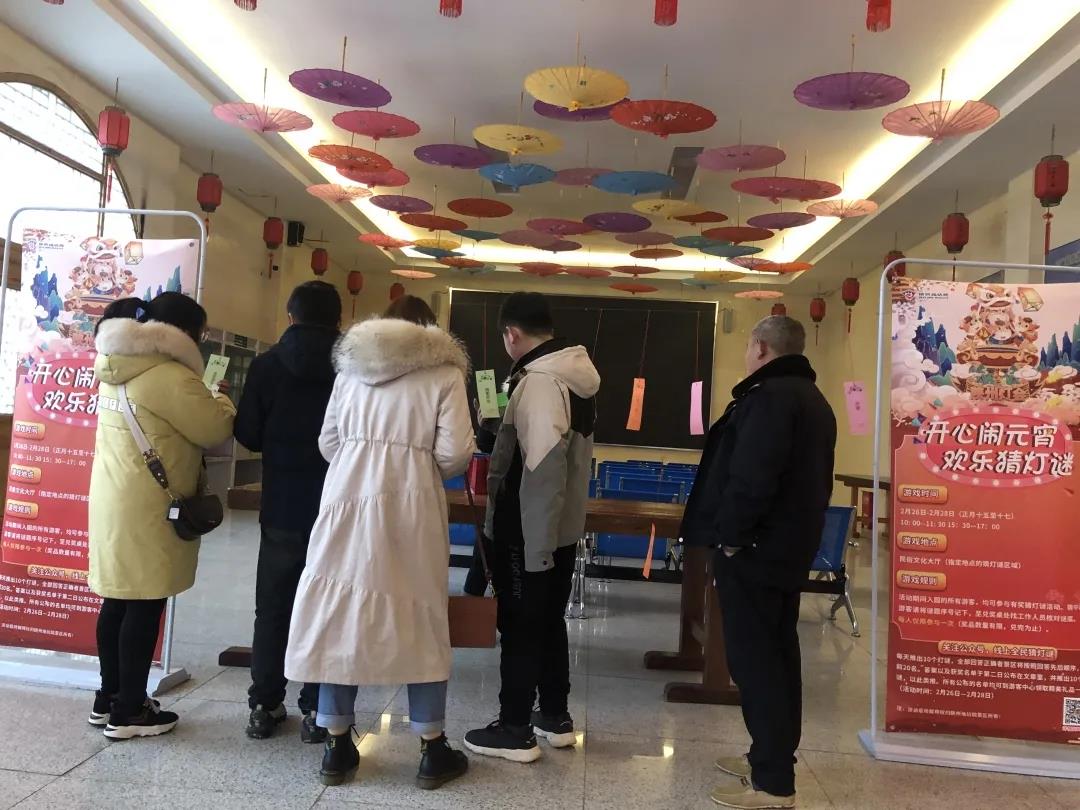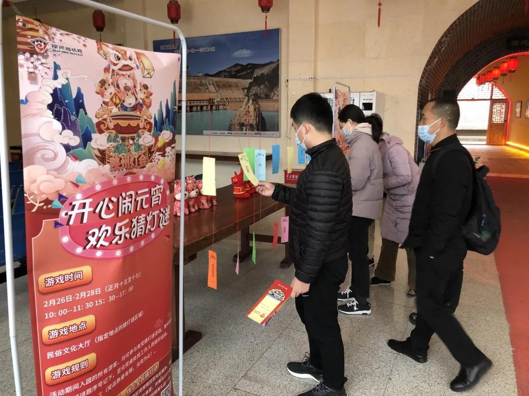 民俗文化園大廳里擺好了燈謎供大家猜謎賞玩,猜中燈謎的游客還能獲得精美禮品。