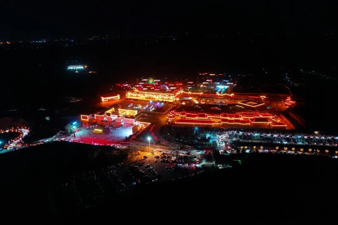 夕陽西下,夜幕降臨,陜州地坑院的燈亮了,地上地下,院里院外,千萬盞彩燈匯成燈的海洋,火樹銀花,璀璨無比,宛若仙境。
