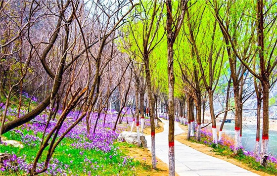 青天河春暖花開、桃紅柳綠,儼然一幅世外桃源的景象,到處都是花的足跡。