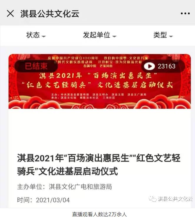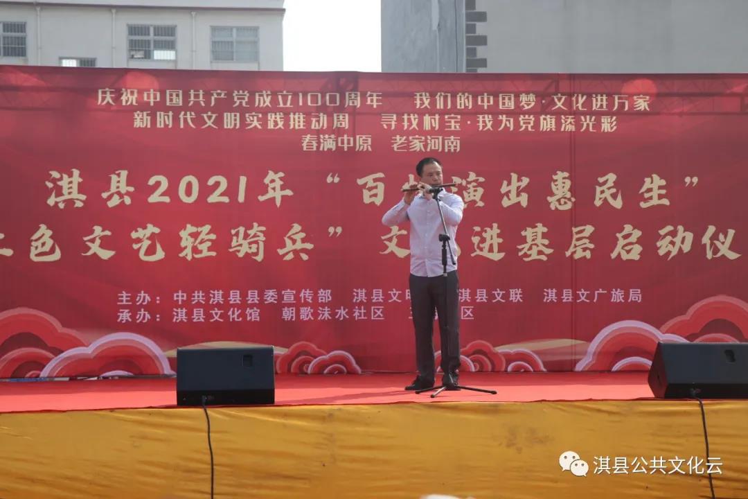 3月4日下午,由中共淇縣縣委宣傳部、淇縣文明辦、淇縣文聯、淇縣文化廣電和旅游局主辦,淇縣文化館、朝歌沬水社區(qū)、三海社區(qū)承辦的淇縣2021年“百場演出惠民生”“紅色文藝輕騎兵”文化進基層啟動儀式在朝歌沬水社區(qū)文化廣場舉行,與全省同步開展“送文藝節(jié)目”文明實踐主題日活動,文藝志愿者們送來熱騰騰的“文藝大餐”,吸引500余名群眾現場觀演互動。