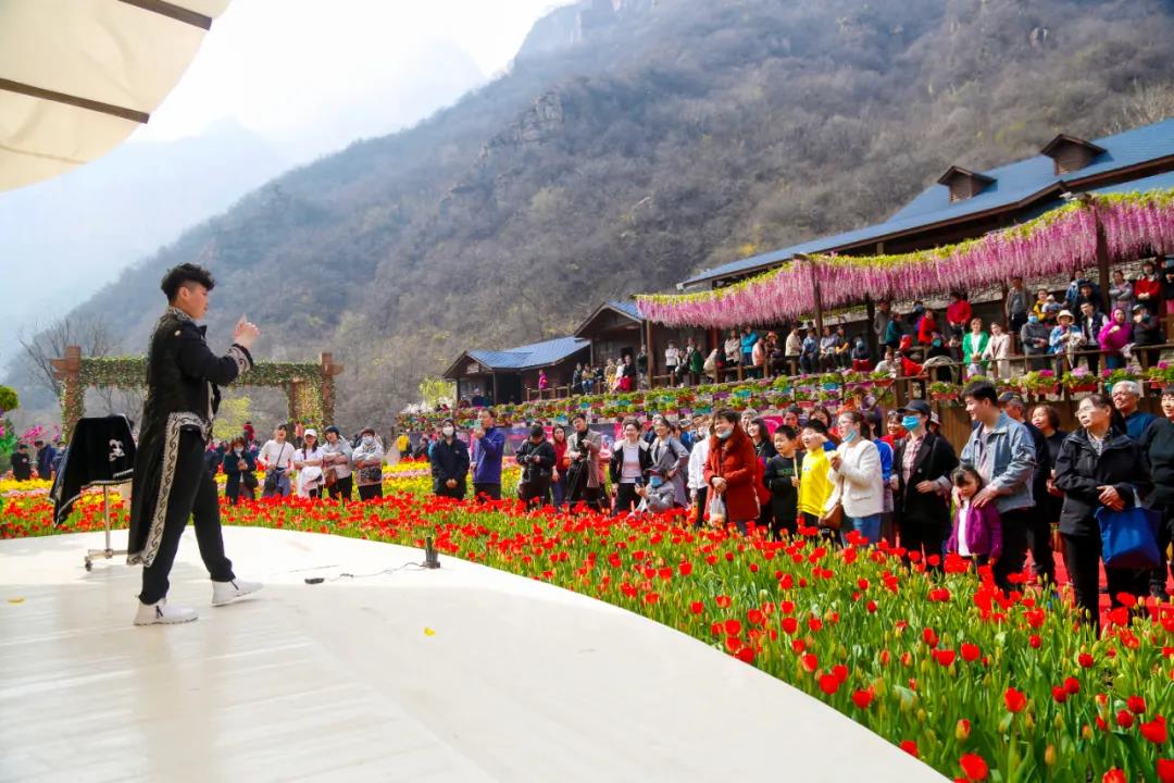 據(jù)悉,寶泉景區(qū)今年的踏青賞花節(jié)從3月1日開始,到4月30日結(jié)束,為期61天。主要有四大特點:一是早。寶泉百萬株郁金香次第綻放,率先為廣大游客開啟一場早春盛會;二是美。寶泉景區(qū)與今日頭條聯(lián)合打造以“春花爛漫 我最好看”為主題的寶泉郁金香抖音挑戰(zhàn)賽,尋找美、發(fā)現(xiàn)美、融于美、我最美,將“美”進行到底。同時發(fā)起“來寶泉郁見花花世界”微博爆款話題,線上聲勢浩大,線下游客多維度參與“立體”活動,如火如荼;三是新,F(xiàn)場造型新穎獨特、仙氣十足。沉浸式場景打造,不僅加強了游客的體驗性和趣味性,更為游客增添了幾分夢幻和驚炫;四是樂。游客互動、氛圍營造成為主題。網(wǎng)紅合照打卡點、民謠風(fēng)演繹、大型情景魔術(shù)、快閃舞蹈、抖音網(wǎng)紅熱舞等,為游客的參與提升新熱度,掀起新高潮。