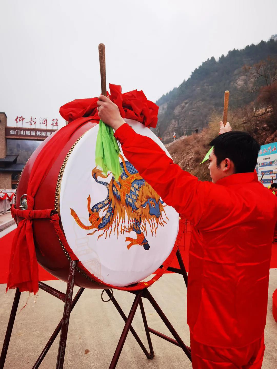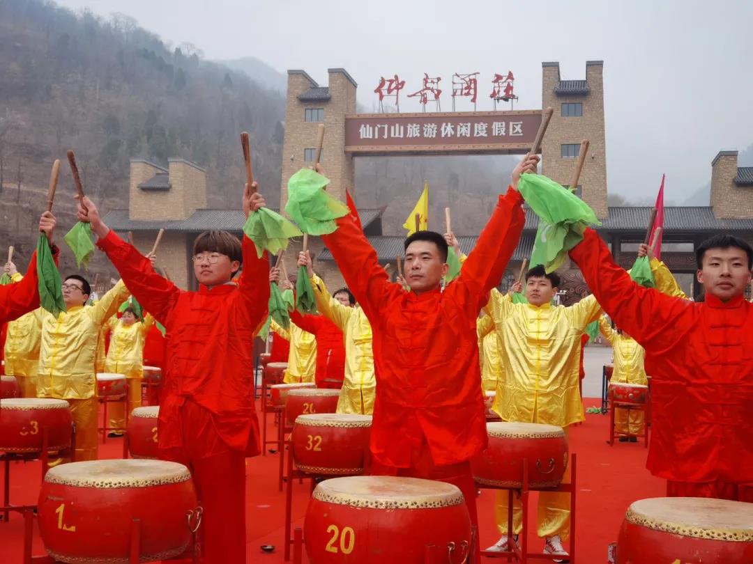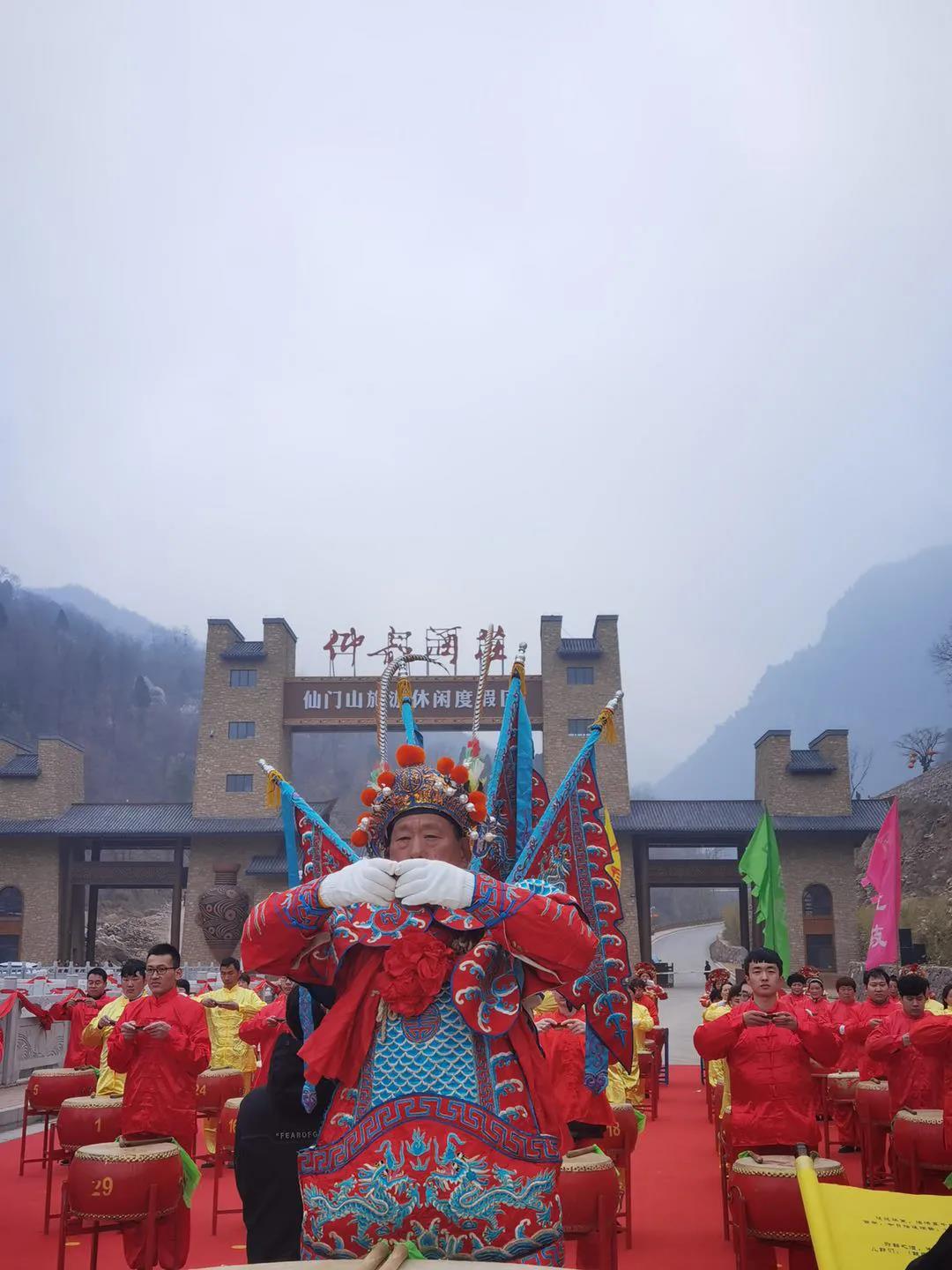 仙門山遵循千年風(fēng)俗,由仰韶古村80青年擂響九通鼓聲,傳承再現(xiàn)千年驚蟄盛典。
