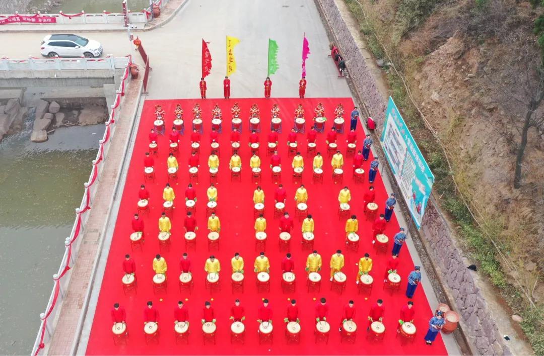 上古時(shí)期,黃帝大戰(zhàn)蚩尤,尋得東海神獸夔牛,將其皮制作成80面戰(zhàn)鼓,以獸骨頭為錘敲其鼓,聲震五百里外,聞其聲后,蚩尤兵潰不成形倉(cāng)皇而逃,黃帝大勝,沿襲至今,驚蟄之時(shí)擊鼓已成傳統(tǒng)習(xí)俗。時(shí)值仰韶文化100周年,仰韶古村青年傳承千年習(xí)俗,80面鼓擺成百字形,致敬仰韶文化,期盼新的一年風(fēng)調(diào)雨順,祈福華夏民族昌盛永興。