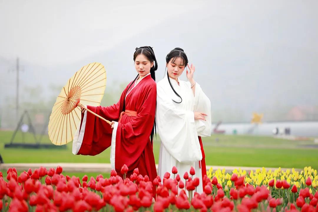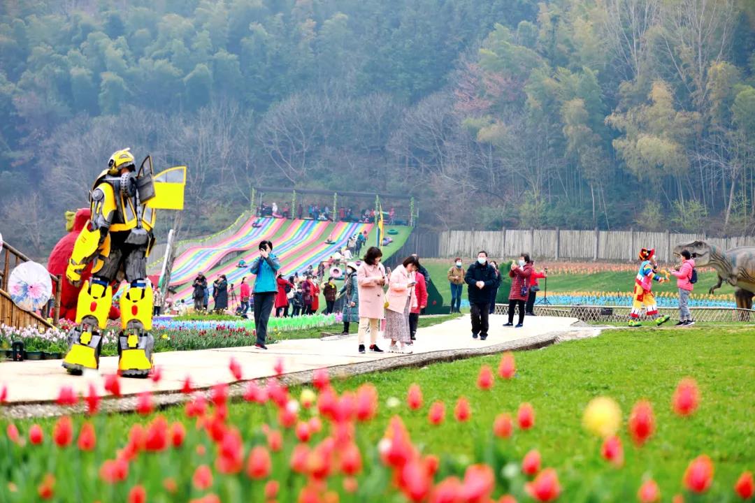 西九華山景區(qū)里花開艷麗,各種顏色的郁金香競相綻放,遠(yuǎn)遠(yuǎn)望去,就是一片繽紛的花海。