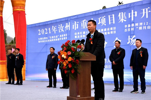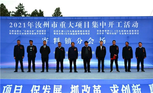 于園飛對本次集中開工的九峰山景區(qū)“石意生活”民宿項(xiàng)目、河南山水薈婕農(nóng)牧科技有限公司年出欄12萬頭商品豬建設(shè)項(xiàng)目、華陽桑樹坪有限公司年出欄12.5萬頭良種豬基地建設(shè)項(xiàng)目、汝州市寄料鎮(zhèn)呂莊村柿樹灣旅游開發(fā)項(xiàng)目、汝州市寄料鎮(zhèn)呂莊村明月山居生態(tài)觀光旅游項(xiàng)目、河南聚友農(nóng)牧科技有限公司年出欄五萬頭商品豬養(yǎng)殖場建設(shè)項(xiàng)目分別做簡要介紹。