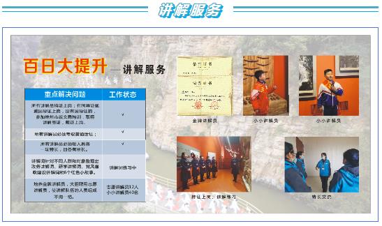 紅旗渠景區(qū)按照“百日大提升”方案要求,制定百日大提升“1211”工作法,創(chuàng)新“他山之石、可以攻玉”提升模式,全員行動,在環(huán)境衛(wèi)生、講解服務(wù)、景區(qū)安全、公共設(shè)施、購物體驗等9個重點領(lǐng)域全面提質(zhì)升級,圓滿完成“百日大提升”各項任務(wù)。
