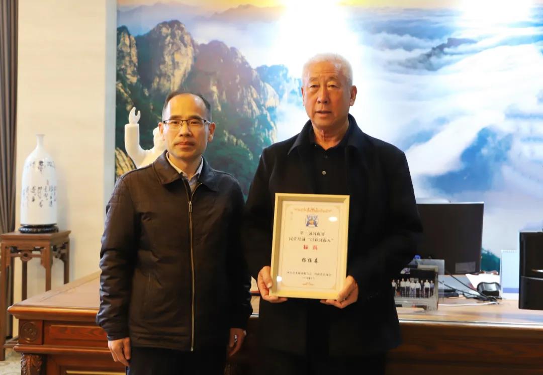 3月18日,欒川縣委統(tǒng)戰(zhàn)部副部長、縣工商聯(lián)黨組書記關(guān)宏德,為老君山景區(qū)董事局主席楊植森頒授河南省民營經(jīng)濟“出彩河南人”標(biāo)兵人物榮譽牌。