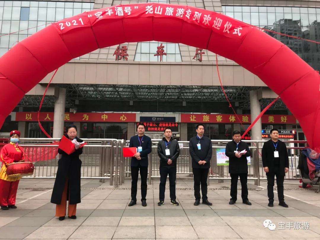 為推進(jìn)寶豐縣文旅產(chǎn)業(yè)高速發(fā)展,助力全市旅游行業(yè)的繁榮強大,3月20日上午,2021年“寶豐酒”號旅游專列歡迎儀式在平頂山火車站隆重舉行。平頂山市文化廣電和旅游局黨組書記、局長徐淵,副局長高亞,宣傳推廣科科長漆國棟,寶豐縣接待和旅游服務(wù)中心主任王校杰,河南省老年旅游專業(yè)委員會主任吳云,河南天瑞堯山旅游有限公司總經(jīng)理徐大川,平頂山市旅游協(xié)會副會長兼秘書長高亮鋒及相關(guān)單位負(fù)責(zé)人參加此次儀式。