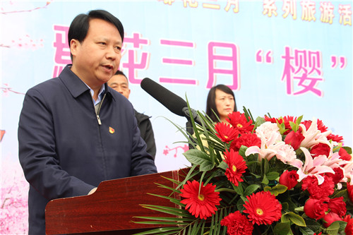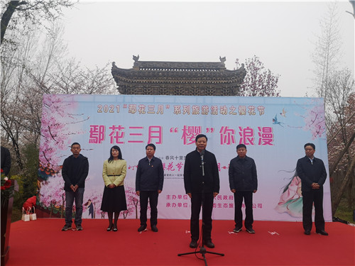 3月20日上午,鄢花三月,“櫻”你浪漫,鄢陵縣2021年“鄢花三月”系列旅游活動之櫻花節(jié)在唐韻櫻花園開幕!河南省文化和旅游廳副廳長李延慶,許昌市文化廣電和旅游局局長孟照陽,鄢陵縣人民政府縣長李亞強,鄢陵縣花木產(chǎn)業(yè)集聚區(qū)管委會主任蔣濤,鄢陵縣委常委、宣傳部長李原,鄢陵縣人民政府副縣長李清占,唐韻生態(tài)旅游有限公司董事長鄭紅偉參加本屆櫻花節(jié)開幕式。