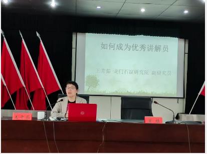 龍門石窟研究院副研究員王青茹就導(dǎo)游(講解員)的講解方法、接待禮儀知識(shí)儲(chǔ)備、講解技巧等進(jìn)行了業(yè)務(wù)技能培訓(xùn)。