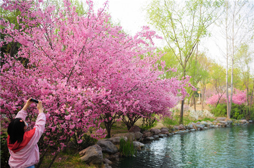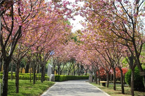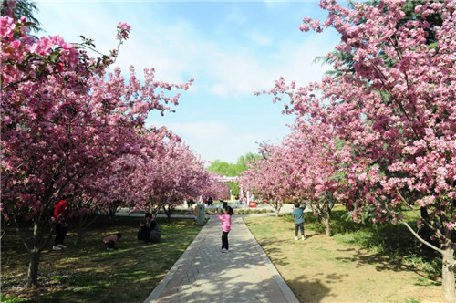 鄭州綠博園內(nèi),櫻花也是種植的主要樹種之一。櫻花開時(shí),綠博園就像舞起一條彩帶,或嬌柔雪白,或艷麗粉紅,園區(qū)里到處都能聞到她淡淡的香味。特別是櫻舞花巷,巷子并不長,大約500米,但路兩側(cè)栽滿了櫻花樹,每年春天,滿地落英繽紛,片片花瓣紅艷十足,橫鋪曲徑,畫面格外清幽,呈現(xiàn)“落花悅目,香路迷人”場景,令人流連忘返。