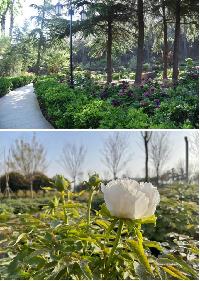夷園內(nèi)種植牡丹400余株,分別是洛陽(yáng)紅,首案紅,黑海撒金,迎日紅,景玉,白雪塔,豆綠,青龍臥墨池,珊瑚臺(tái),彩繪,雪映桃花,銀紅巧對(duì),銀粉金鱗。