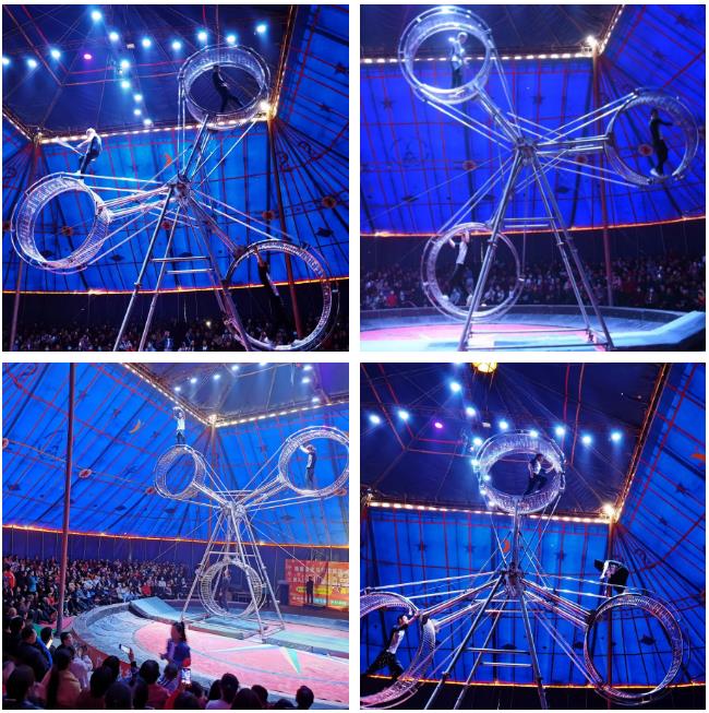 時光大飛輪是皇家大馬戲中的重武器了,藝高人膽大的挑戰(zhàn)者們在飛速轉(zhuǎn)動的滾筒里如履平地。最驚險刺激的就是站在滾筒外面蒙眼走、跳繩,那看得觀眾們心肝顫,一直提著心呢。
